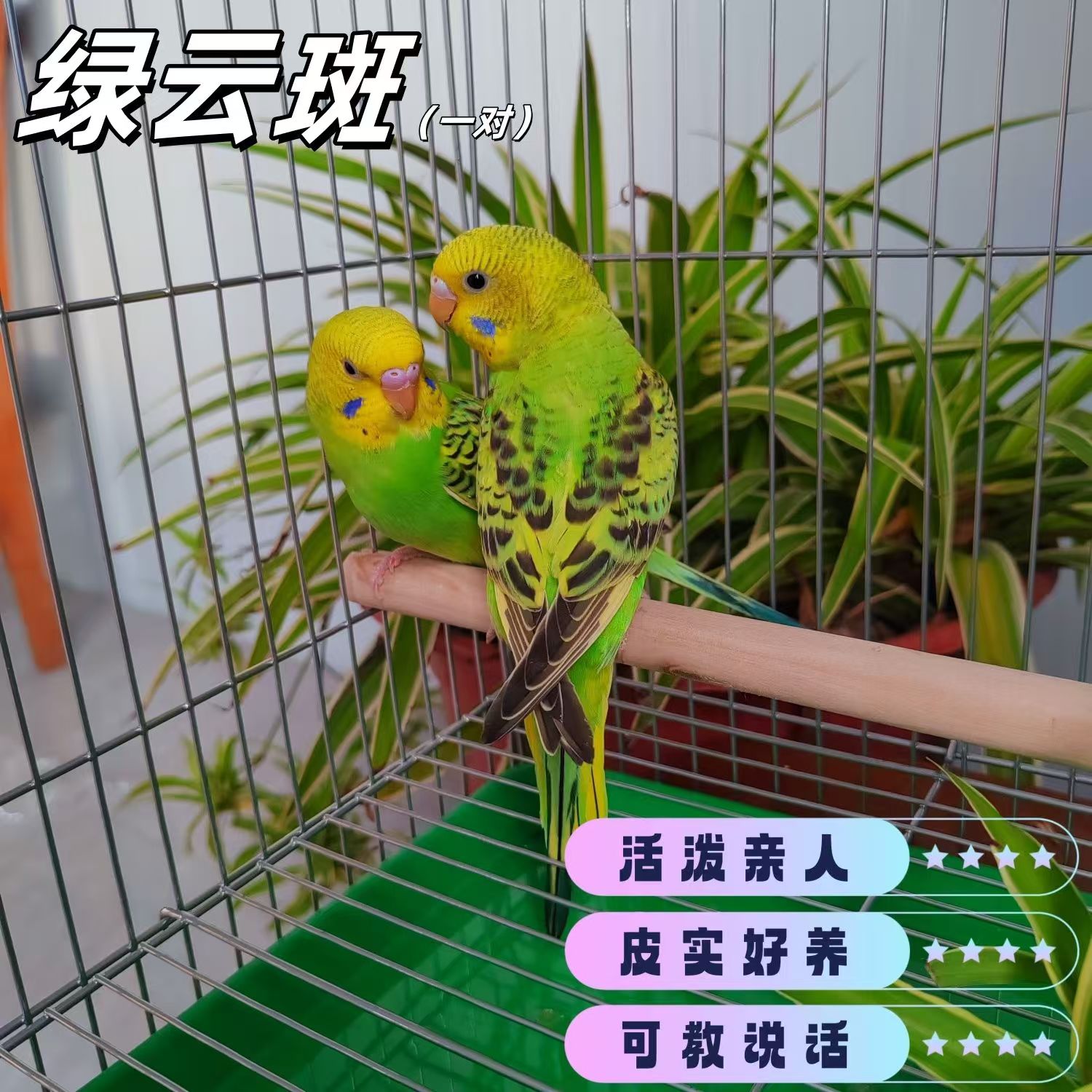 鹦鹉绿云班手养宠物鸟可繁殖送笼子小零食大礼包一对69.5